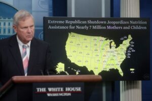 U.S. Department of Agriculture Secretary Tom Vilsack speaks about a possible government shutdown during a press briefing at the White House in Washington, U.S., September 25, 2023. REUTERS/Leah Millis
