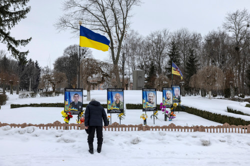 Like countless other towns and villages across Ukraine, it features a so-called “Alley of Heroes” with portraits of fallen soldiers. Residents stop by every morning to honour them in a moment of silence.