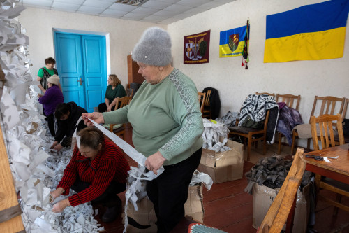 Sitting in her living room, she recalls a moment earlier in the war when she found a young man outside her home in Vremivka who had been killed by shrapnel. As a mother, it hit her particularly hard.